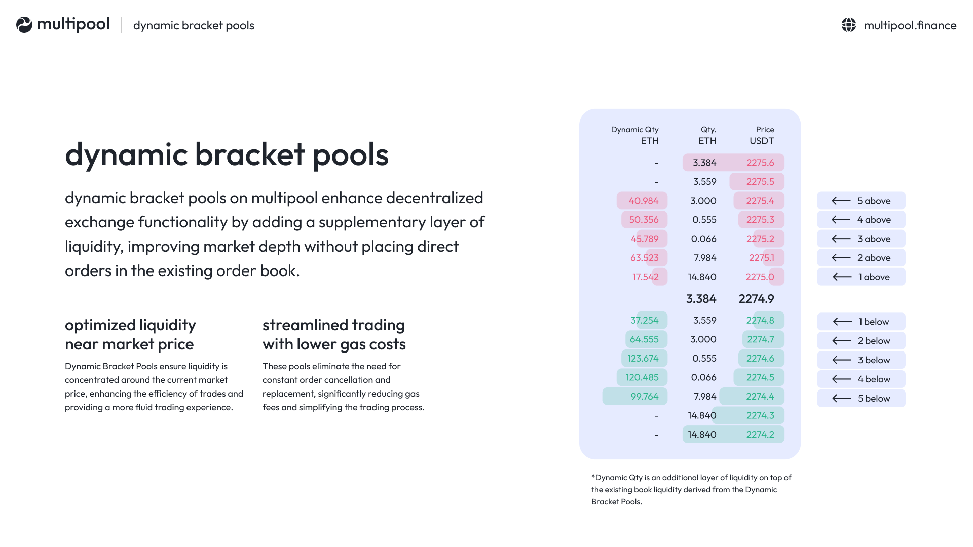 In the rapidly evolving landscape of decentralized finance (DeFi), market makers face unique challenges, particularly the high gas fees associated with placing and canceling orders on-chain. Multipool introduces Dynamic Bracket Pools, a groundbreaking solution that not only minimizes these costs but also automates the market-making process, thereby enhancing liquidity provision and trading efficiency on decentralized exchanges.